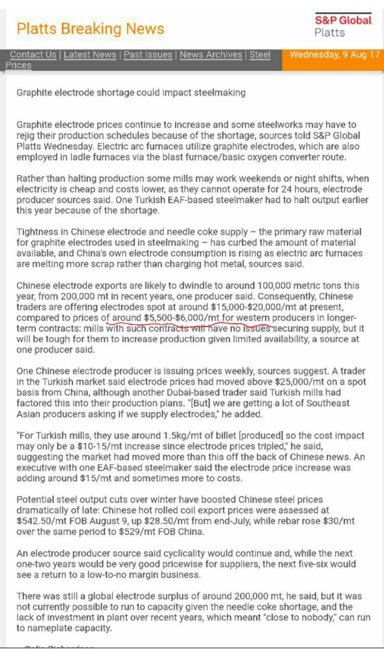 به نقل از روابط عمومی سندیکای تولیدکنندگان لوله و پروفیل فولادی ایران، قیمت الکترود گرافیتی برای اروپا ۵۵۰۰ تا ۶۰۰۰ دلار پیشنهاد شد .