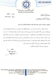 موضوع : درخواست تعیین سقف مجاز رقابت محصولات فولادی تا ۵ درصد