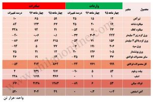 به عبارت دیگر در بخش صادرات فولاد خام شاهد صادراتی ۲ میلیون و ۱۳۸ هزار تن بودیم که رشد ۶۷ درصدی نسبت به ۴ ماهه اول سال ۹۵ داشت درحالی که در بخش محصولات فولادی، فولادسازان تنها موفق به صادرات ۴۱۴ هزار تن شدند که افت ۵۲ درصدی را نسبت به مدت مشابه سال قبل نشان می دهد.