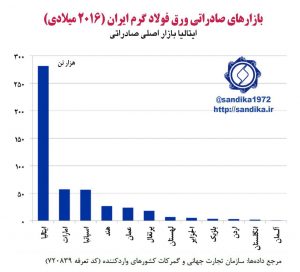 ایتالیا بازار اصلی صادرات ورق فولاد گرم ایران در سال ۲۰۱۶ میلادی