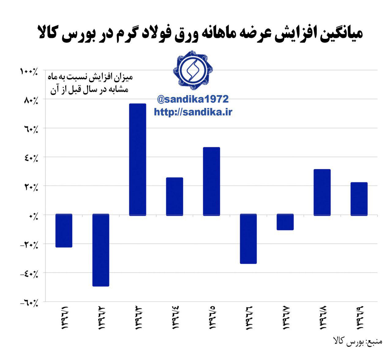 میزان افزایش عرضه ماهانه ورق فولاد گرم در بورس کالا