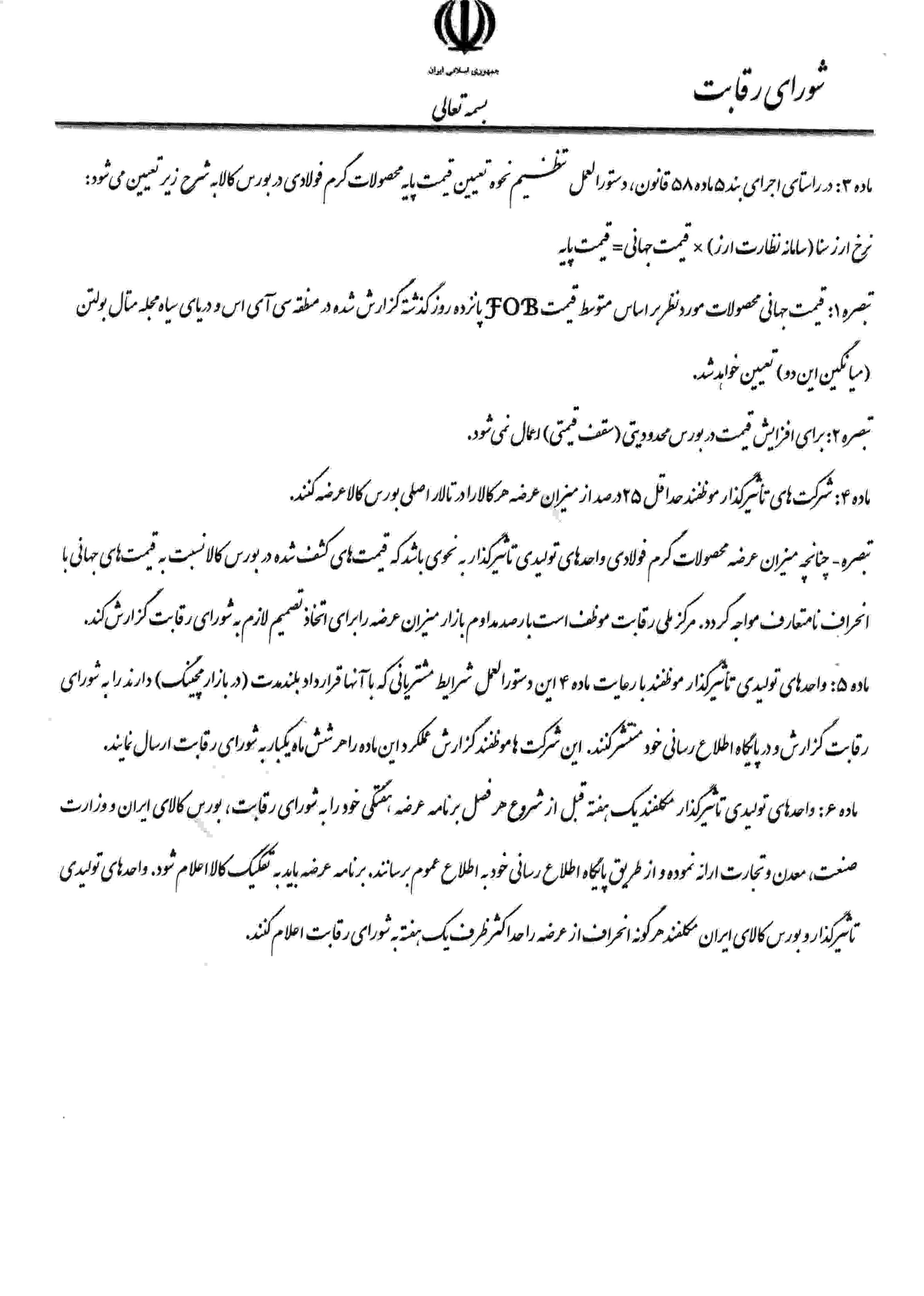 🌟رای شورای رقابت برای جلوگیری از انحصار در فروش ورق فولادی در بورس کالا ۴ بند پیوسته داشت که لازم و ملزوم یکدیگر هستند که فعلا فقط یک بند آن اجرایی شده است !