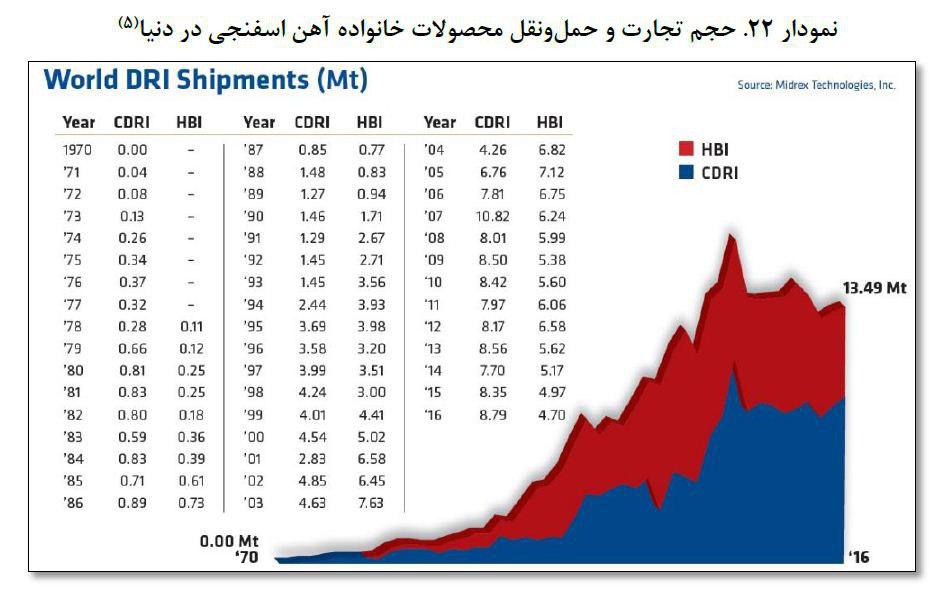 زنجیره فولاد / نمودار ۰۸ اردیبهشت ۱۳۹۷ شناسه خبر : 4175 نمودار ۲۲ – حجم تجارت و حملونقل محصولات خانواده آهن اسفنجی در دنیا