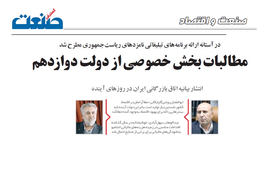 خصوصى اقتصاد ایران بناست در روزهاى آینده بیانی هاى در راستاى ارائه مطالبات و انتظارات بخش خصوصى صادر کند.