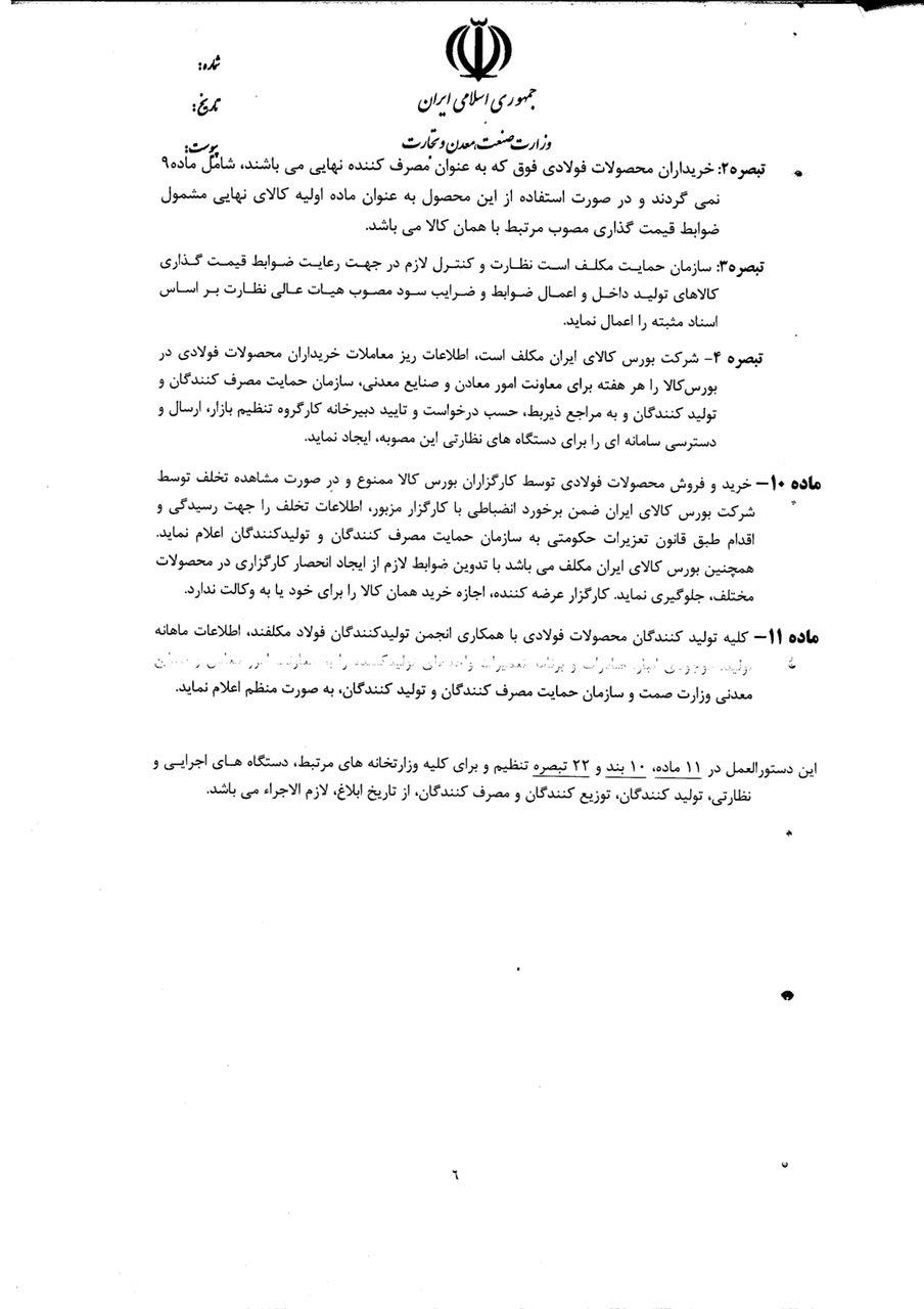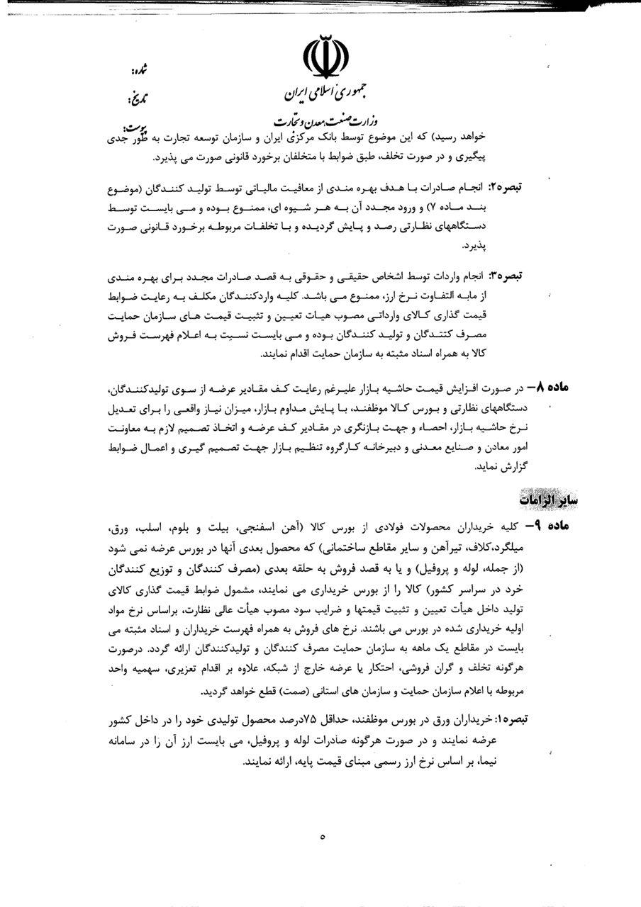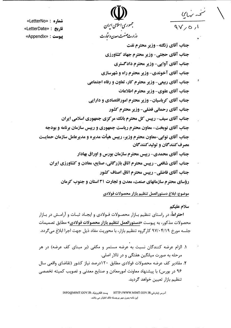 ابلاغیه تنظیم بازار فولادی ۱-۵-۹۷