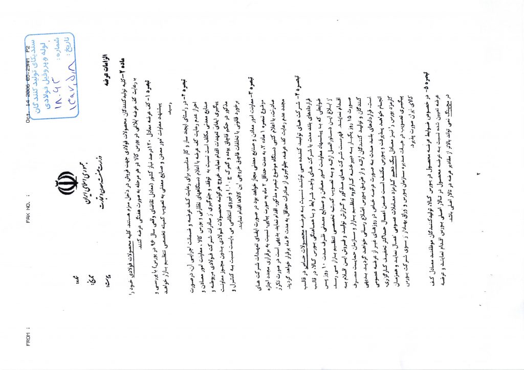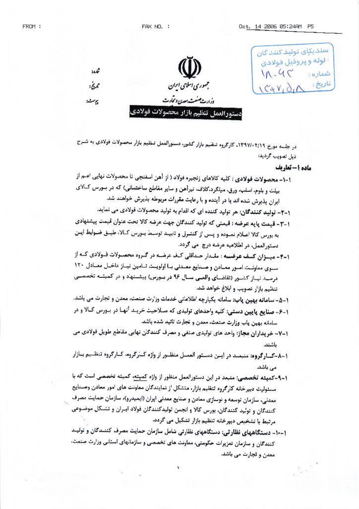 ۶- اولویت قراردادن تامین نیاز داخلی بر صادرات و حفظ ارزش افزوده تبدیل محصولات فولادی در سقف ظرفیتهای نصب شده و صادرات آنها پس از فراوری.