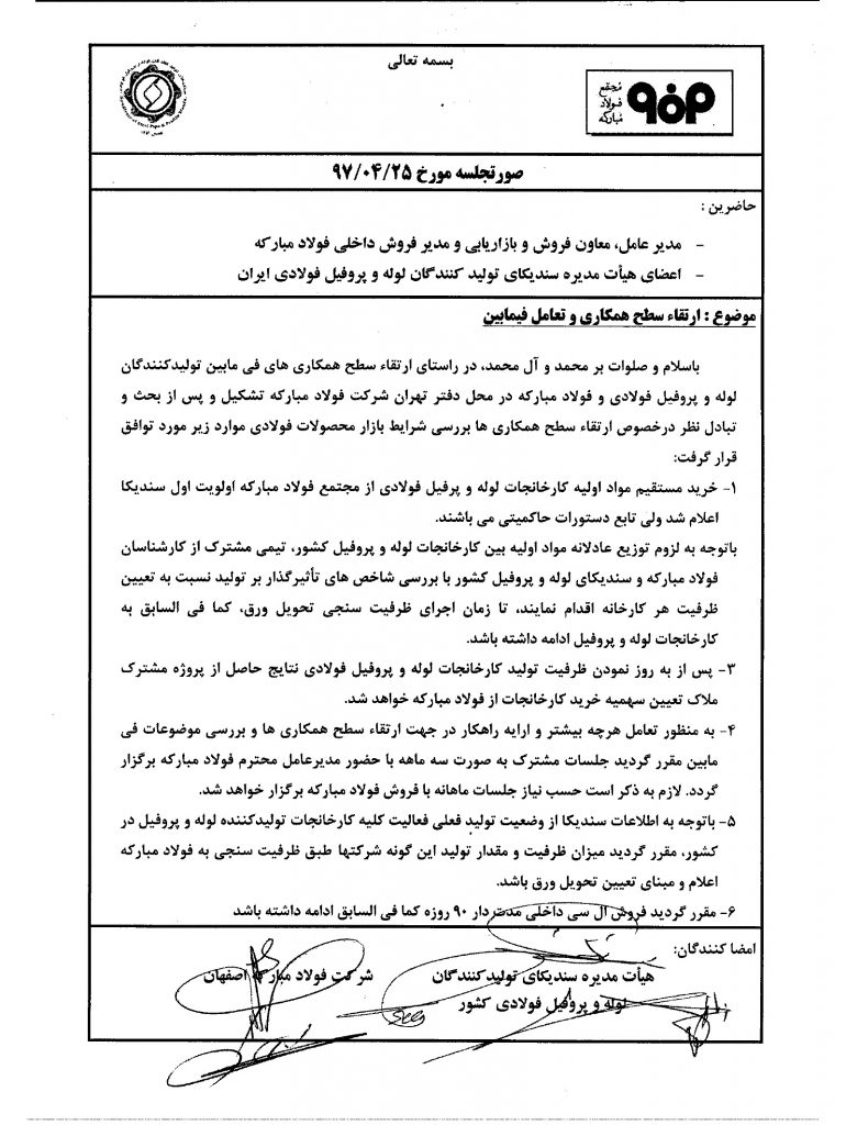 امضا کنندگان: هیأت مدیره سندیکای تولیدکنندگان شرکت فولاد مبارکه اصفهان لوله و پروفیل فولادی کشور |