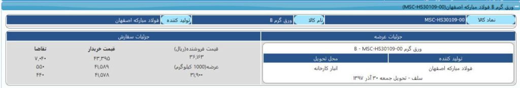 عرضه اولیه ۱۱۰۰۰تن است که تا ۶۰۰۰۰تن امکان افزایش داشت،ولی عرضه کننده تنها تا ۳۱۹۰۰تن افزایش داد
