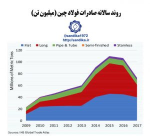 نمودار ۱۲۲ ✅ ترکیب روند صادرات سالانه فولاد چین بر حسب محصولات فولادی (میلیون تن)