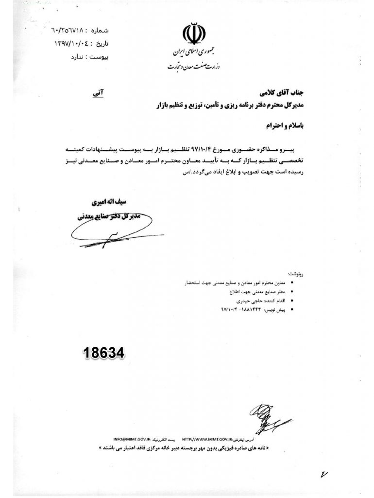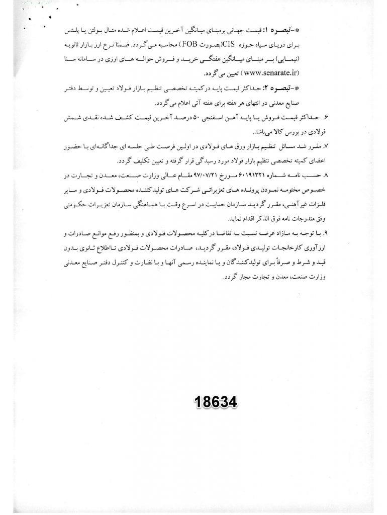 👈اصلاحات دستور العمل تنظیم بازار و بروزآوری فرمول قیمت گذاری بورس کالا و بهبود شرایط قیمت پایه شمش فولاد (ابلاغی آقای دکتر رحمانی ۸/۱۰/۱۳۹۷)