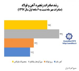 نمودار ۱۳۰ ✅ رشد صادرات زنجیره آهن و فولاد در مهر ماه سال ۱۳۹۷