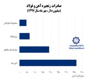 نمودار ۱۳۱ ✅صادرات زنجیره آهن و فولاد (میلیون دلار ، مهر ماه سال ۱۳۹۷)