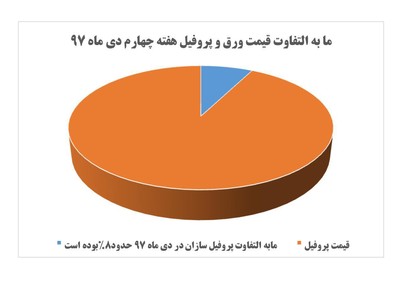 ⛔️مابه التفاوت قیمت ورق گرم فولادی در بازار و قیمت فروش پروفیل در هفته چهارم دی ماه ۹۷ حدود۸% بوده است.