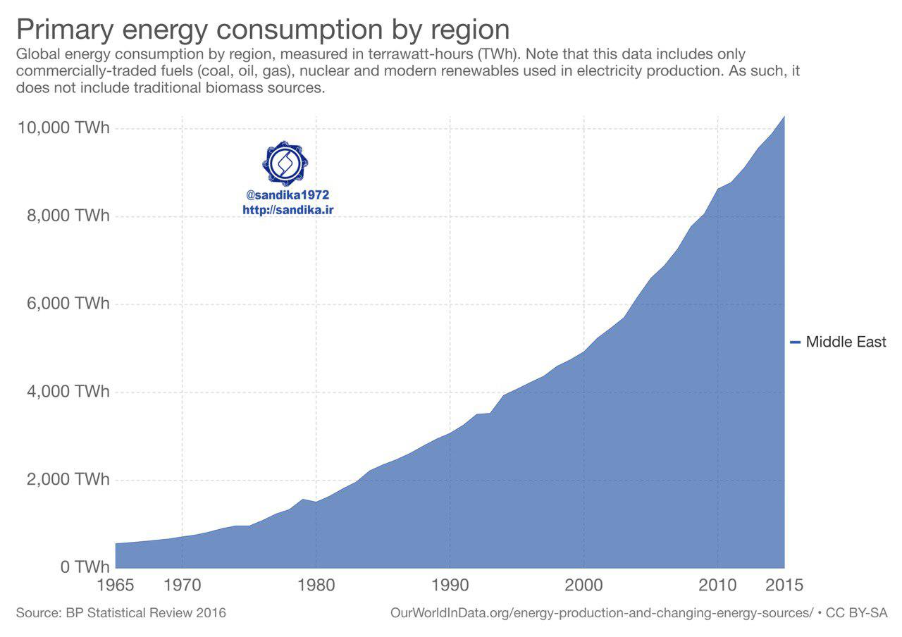 ۲۰۷ 🏵 مصرف انرژی اولیه خا،ومیانه در ۳۰ سال اخیر بیش از ۵ برابر شده است.