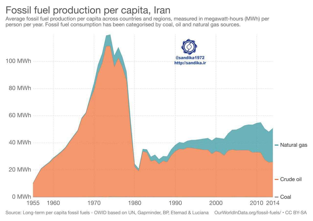 ۲۱۴. ◾️روند تولید سرانه سوخت های فسیلی ایران در ۶۰ سال اخیر