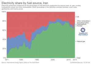 سهم گاز طبیعی از تولید برق در ایران به حدود ۷۰ درصد رسیده است.