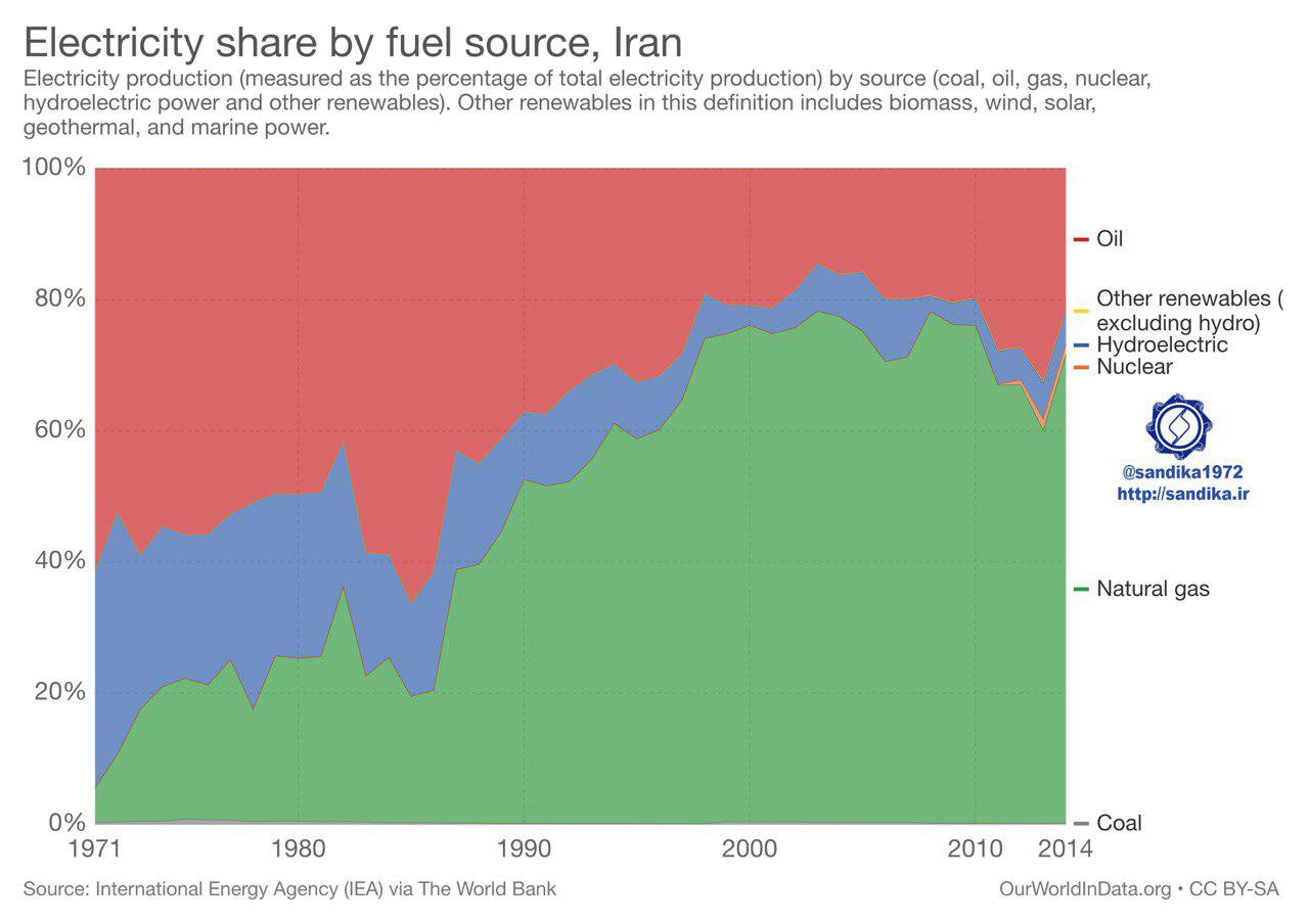 ۲۱۵ ✴️✴️روند سهم منابع انرژی از تولید الکتریسیته در ایران