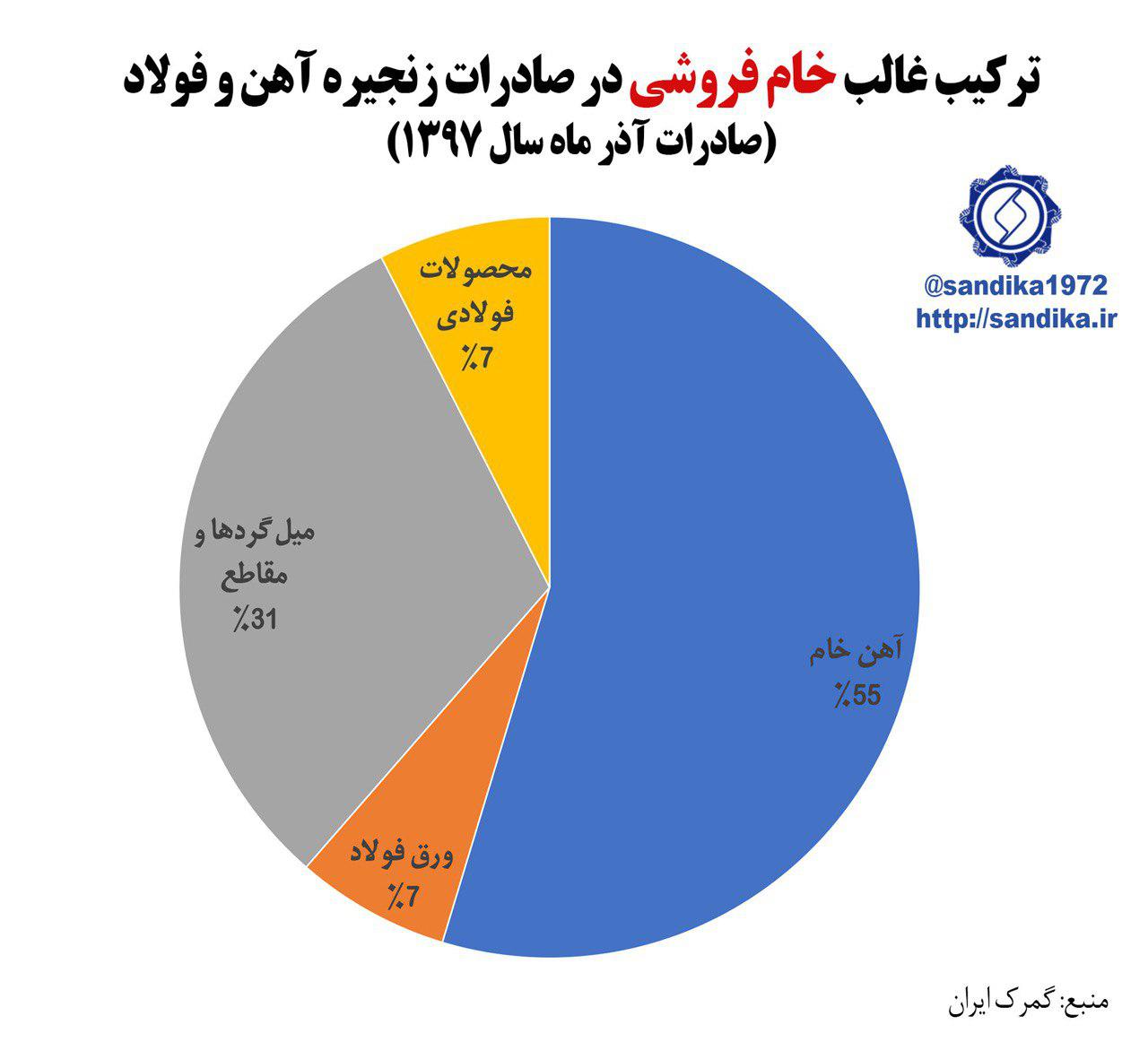۲۲۱/ترکیب غالب خام فروشی در صادرات زنجیره آهن و فولاد در آذر ماه ۱۳۹۷