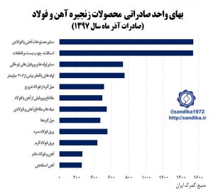 ۲۲۲/♦️♦️بهای واحد صادراتی محصولات زنجیره آهن و فولاد در آذر ماه ۱۳۹۷