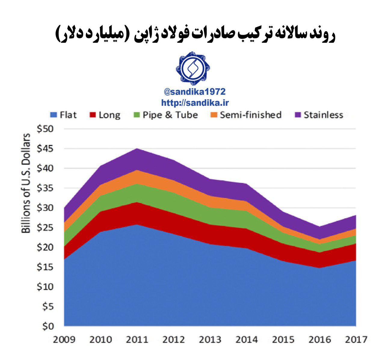 ۲۹۲ ✴️روند سالانه ترکیب صادرات فولاد ژاپن (میلیارد دلار)