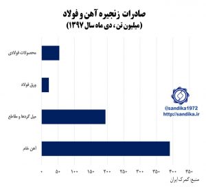 ۳۰۳◾️◾️صادرات زنجیره آهن و فولاد (میلیون تن ، دی ماه سال ۱۳۹۷)