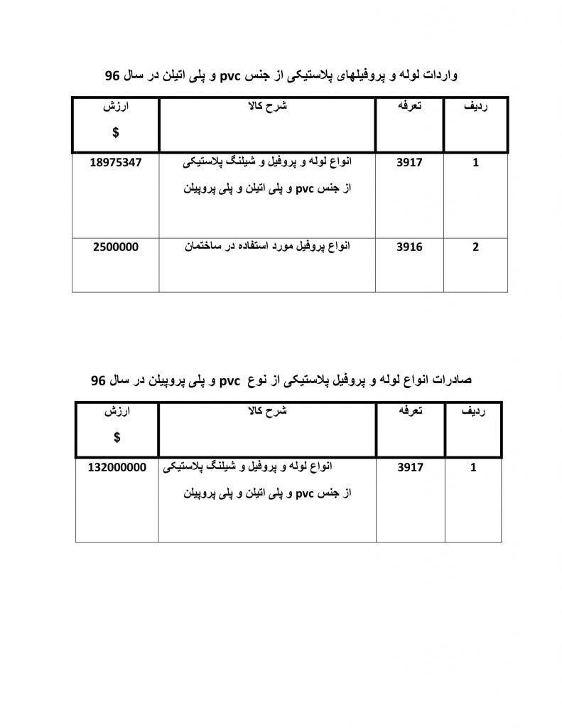 لوله ها و پروفیل های پلاستیکی از جنس پی وی سی و پلی اتیلن و پلی پروپیلن با تعرفه های ۳۹۱۶