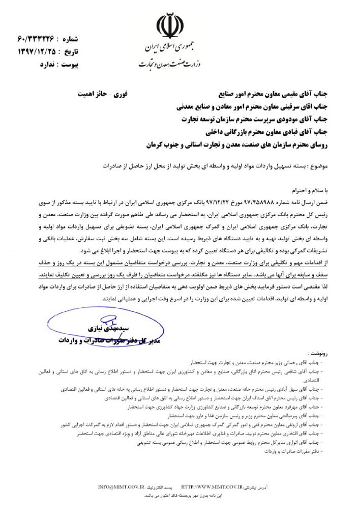 سازوکار اجرایی بسته تسهیل واردات مواد اولیه و واسطه ای بخش تولید از محل ارز حاصل از صادرات و حساب ارزی واردکننده