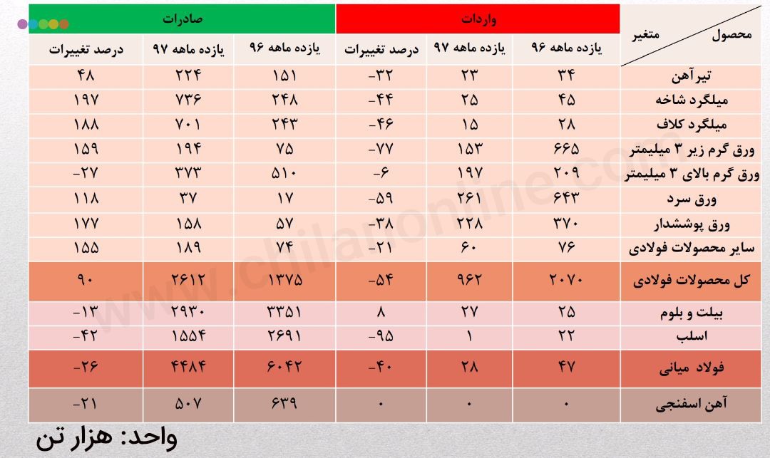 افزایش هفتگی قیمت بخاطر #قطحی_ورق گرم زیر ۳ میلی متر در داخل با 🔴کاهش ۷۷درصدی واردات ورق گرم زیر ۳ میلی متر طی یازده ماهه ۹۷ و 🔴افزایش ۱۵۹درصدی صادارت ورق گرم زیر ۳ میلی متر طی ۱۱ ماهه ۹۷