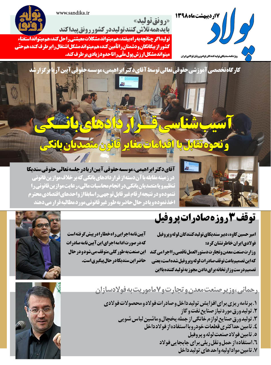 ۱. برنامه ریزی برای افزایش تولید داخل و صادرات فولاد و محصولات فولادی
