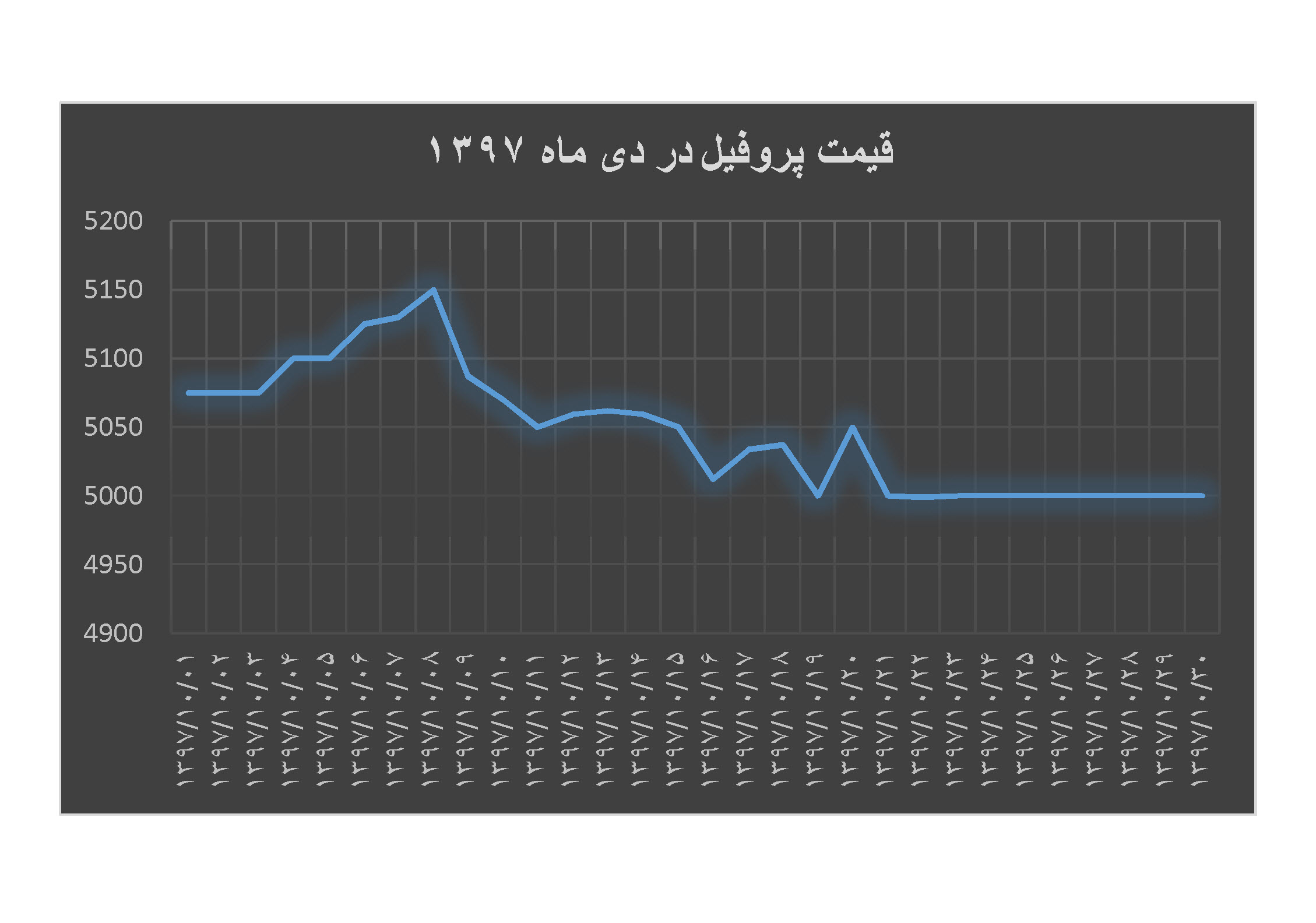 برگزیده / جدول هفتگی قیمت ها / زنجیره فولاد / گوناگون / نمودار ۰۱ اسفند ۱۳۹۷ شناسه خبر : 6057 ۱۰-۹۷ نمودار قیمت پروفیل در دی ماه ۹۷ + ارشیو سال ۹۷ آرشیو قیمت در سال ۹۷ نمودار قیمت های پروفیل فولادی در آذرماه ۹۷ به همراه نمودار قیمت در طول سال ۹۷ آرشیو قیمت در سال ۹۷ نمودار قیمت های پروفیل فولادی در آذرماه ۹۷ به همراه نمودار قیمت در طول سال ۹۷