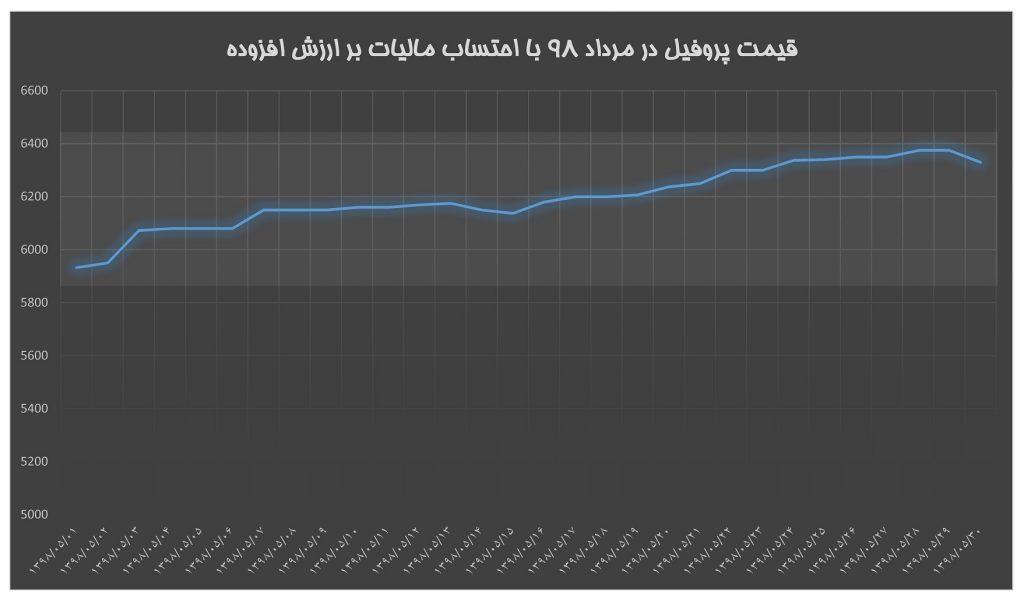 برگزیده / جدول هفتگی قیمت ها / زنجیره فولاد / نمودار ۳۱ مرداد ۱۳۹۸ شناسه خبر : 6497 قیمت پروفیل ۲ میل در مرداد ۹۸ با احتساب مالیات بر ارزش افزوده