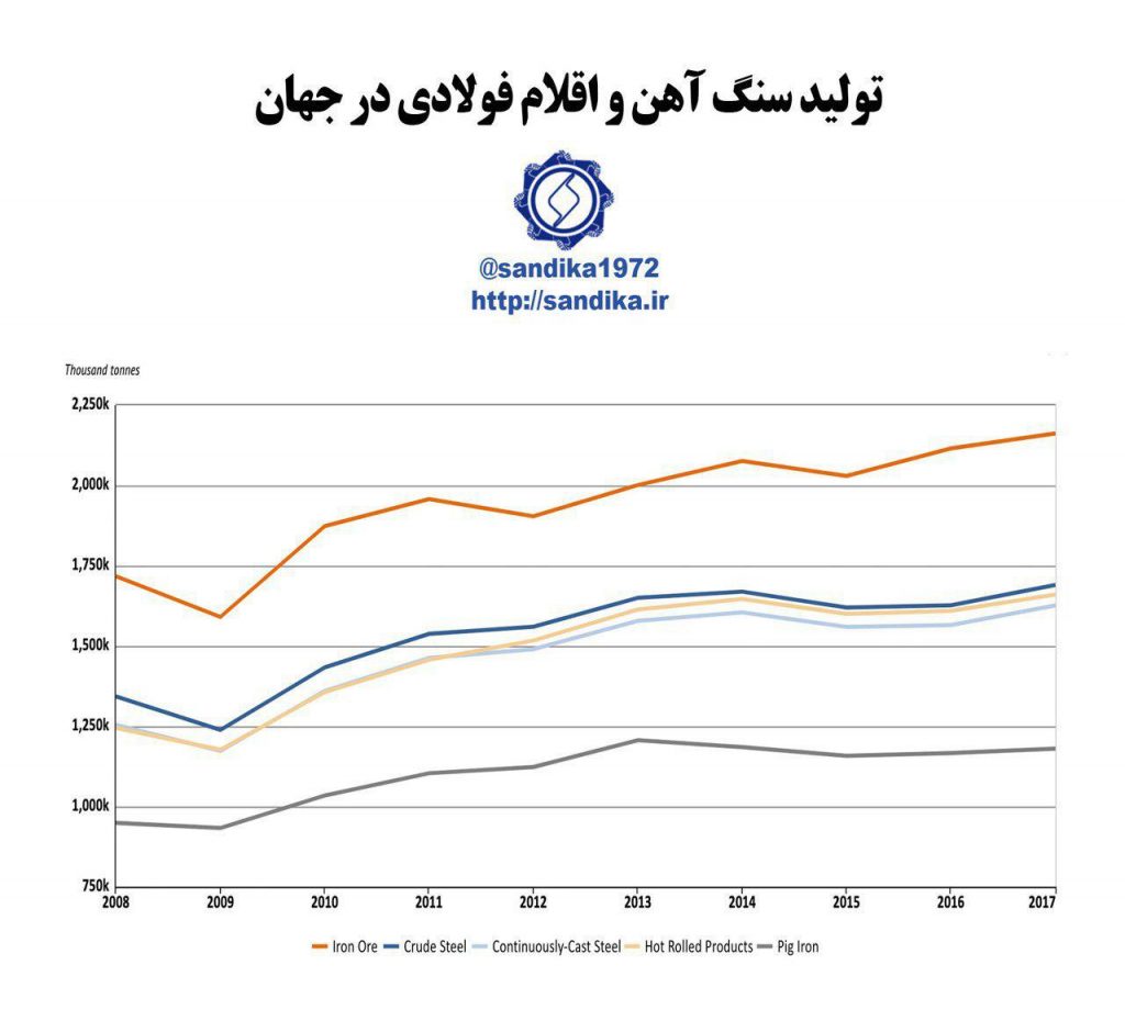 جدول هفتگی قیمت ها / نمودار ۲۴ شهریور ۱۳۹۸ شناسه خبر : 6778 تولید سنگ آهن و اقلام فولادی در جهان ۶-۹۸ ۵ تولید سنگ آهن و اقلام فولادی در جهان @sandika1972 شورای تحقیقات سندیکا #نمودار تولید سنگ آهن و اقلام فولادی در جهان @sandika1972 شورای تحقیقات سندیکا #نمودار