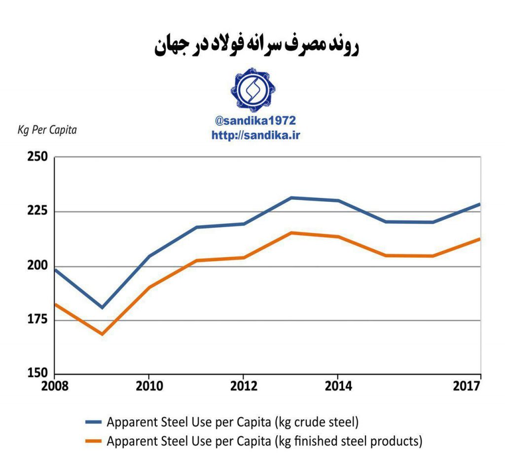 زنجیره فولاد / نمودار ۲۴ مهر ۱۳۹۸ شناسه خبر : 6784 روند مصرف سرانه فولاد در جهان -نمودار بر اساس وزن ۷-۹۸ ۱ روند مصرف سرانه فولاد در جهان -نمودار بر اساس وزن @sandika1972 شورای تحقیقات سندیکا #نمودار روند مصرف سرانه فولاد در جهان -نمودار بر اساس وزن @sandika1972 شورای تحقیقات سندیکا #نمودار