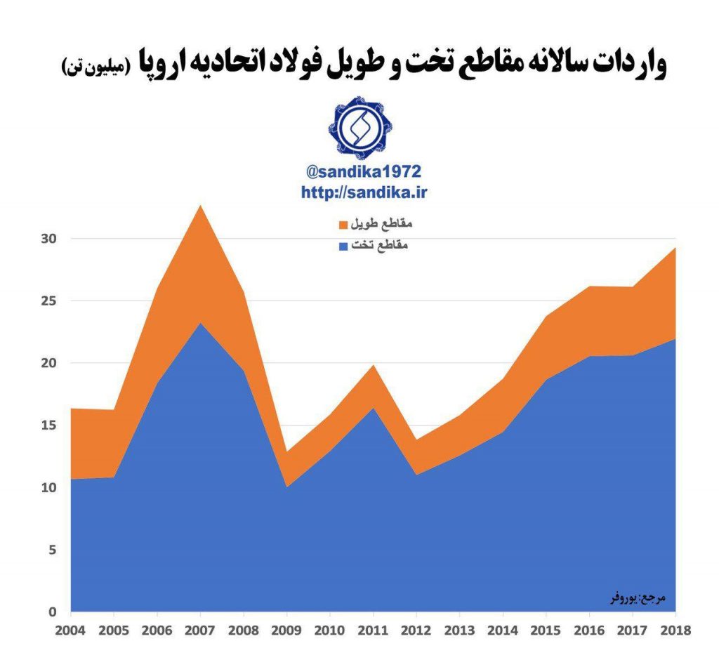 🔴 واردات سالانه مقاطع تخت و طویل فولاد اتحادیه اروپا (میلیون تن)