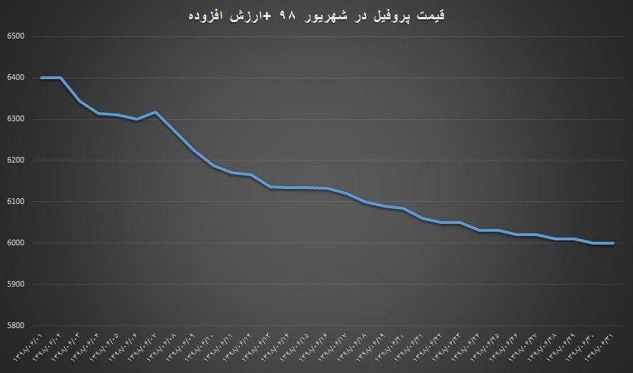 نمودار میانگین قیمت پروفیل ۲ میل در شهریور ماه ۹۸ با احتساب مالیات بر ارزش افزوده