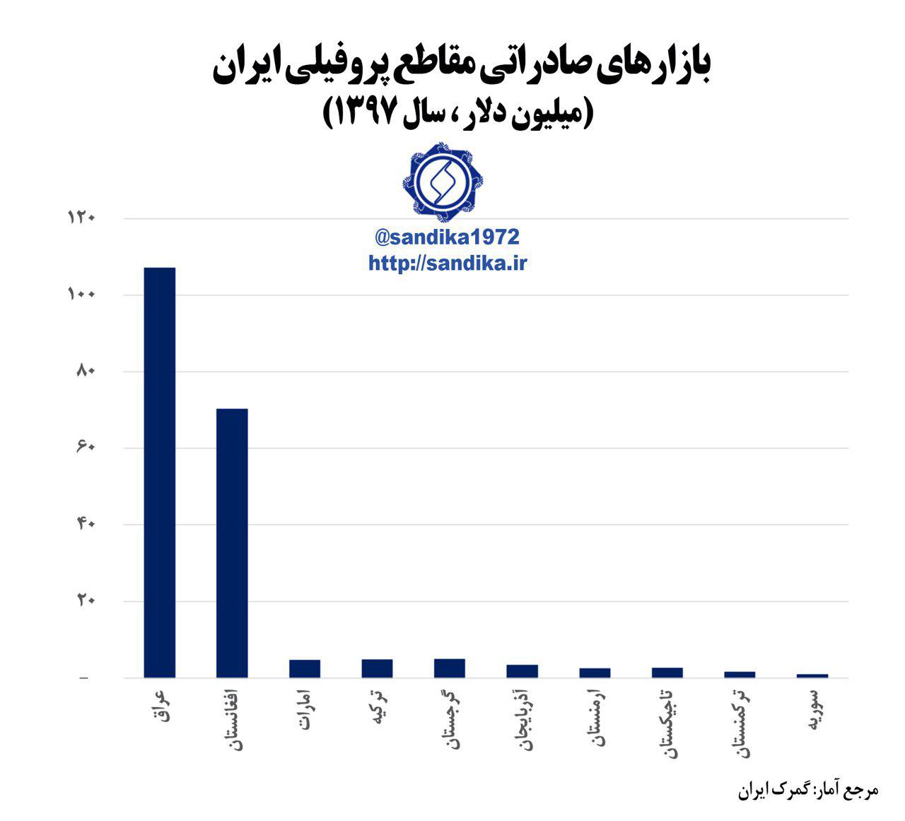 🔴 بازارهای صادراتی مقاطع پروفیلی ایران (میلیون دلار ، سال ۱۳۹۷)