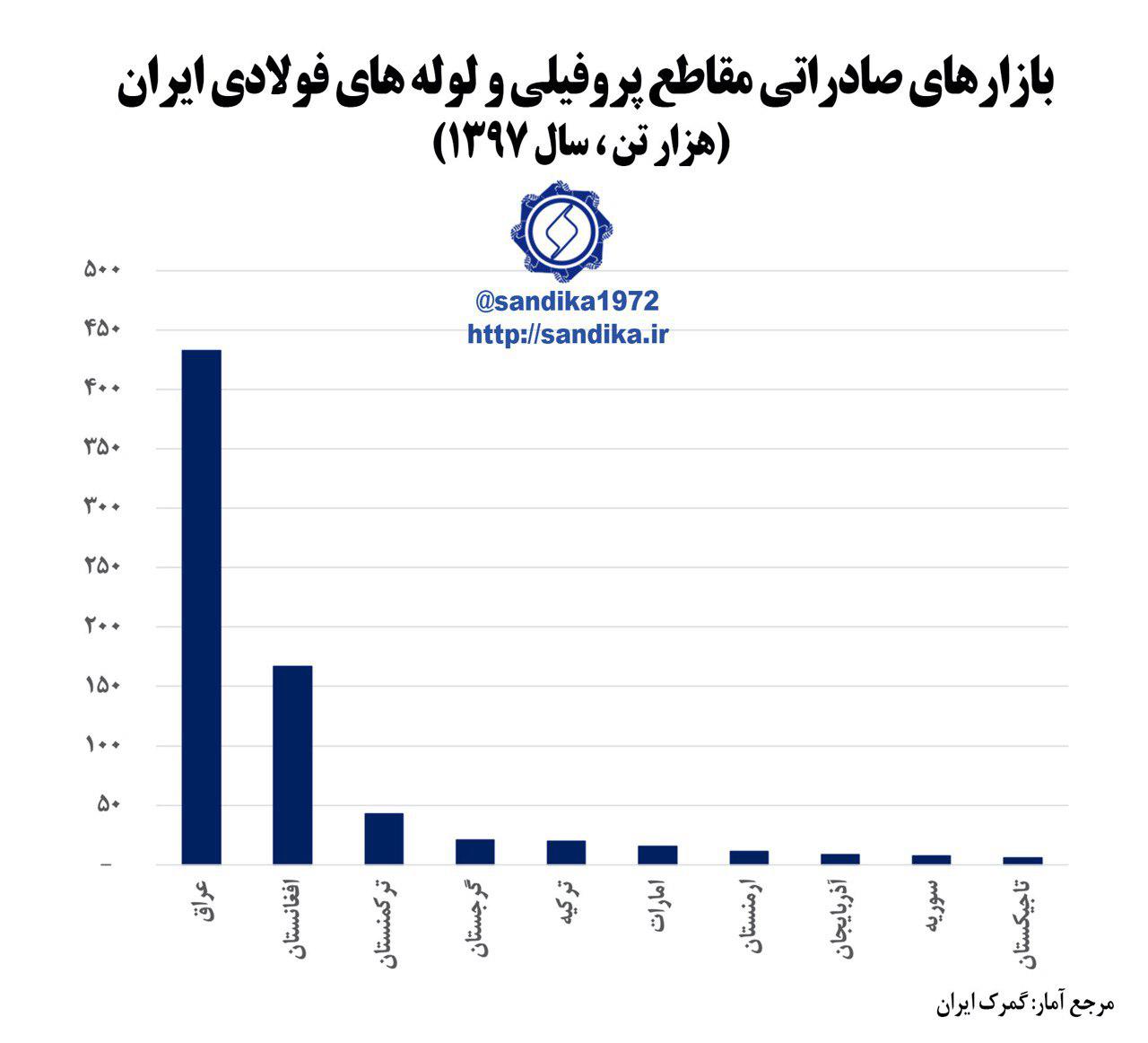 🔴 بازارهای صادراتی مقاطع پروفیلی و لوله های فولادی ایران (هزار تن ، سال ۱۳۹۷)