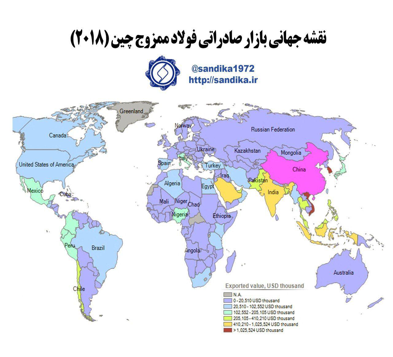 🔴 نقشه جهانی بازار صادراتی ورق فولاد ممزوج چین (۲۰۱۸)