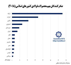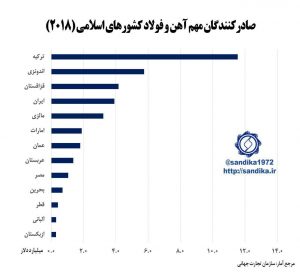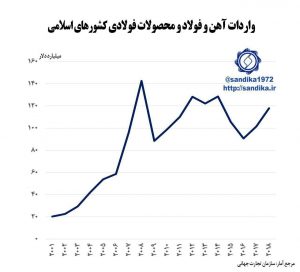 مجموعه نمودارهای صادرات و واردات آهن و فولاد کشورهای اسلامی (۱۸-۲۰۰۱ میلادی)