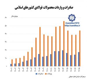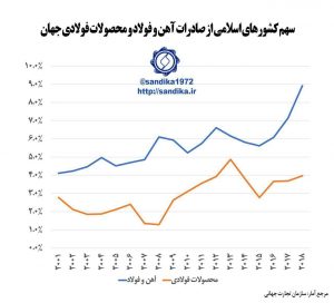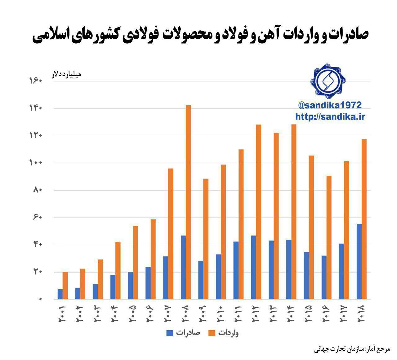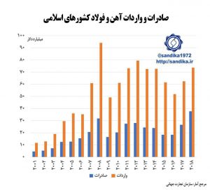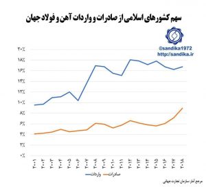 سهم کشورهای اسلامی از صادرات و واردات آهن و فولاد جهان (۱۸-۲۰۰۱ میلادی) |