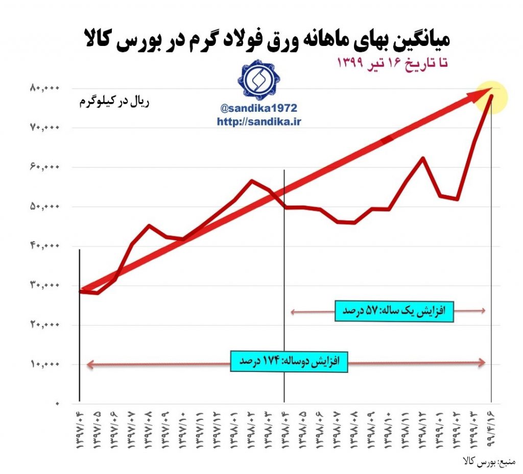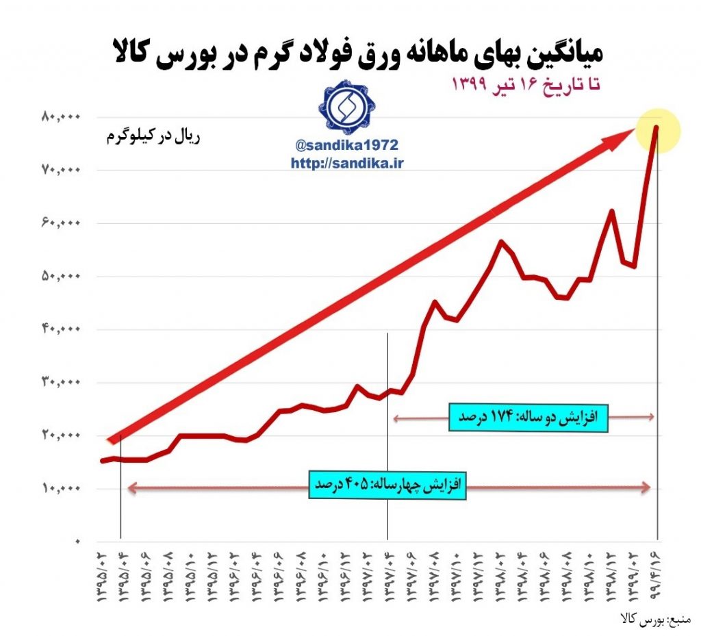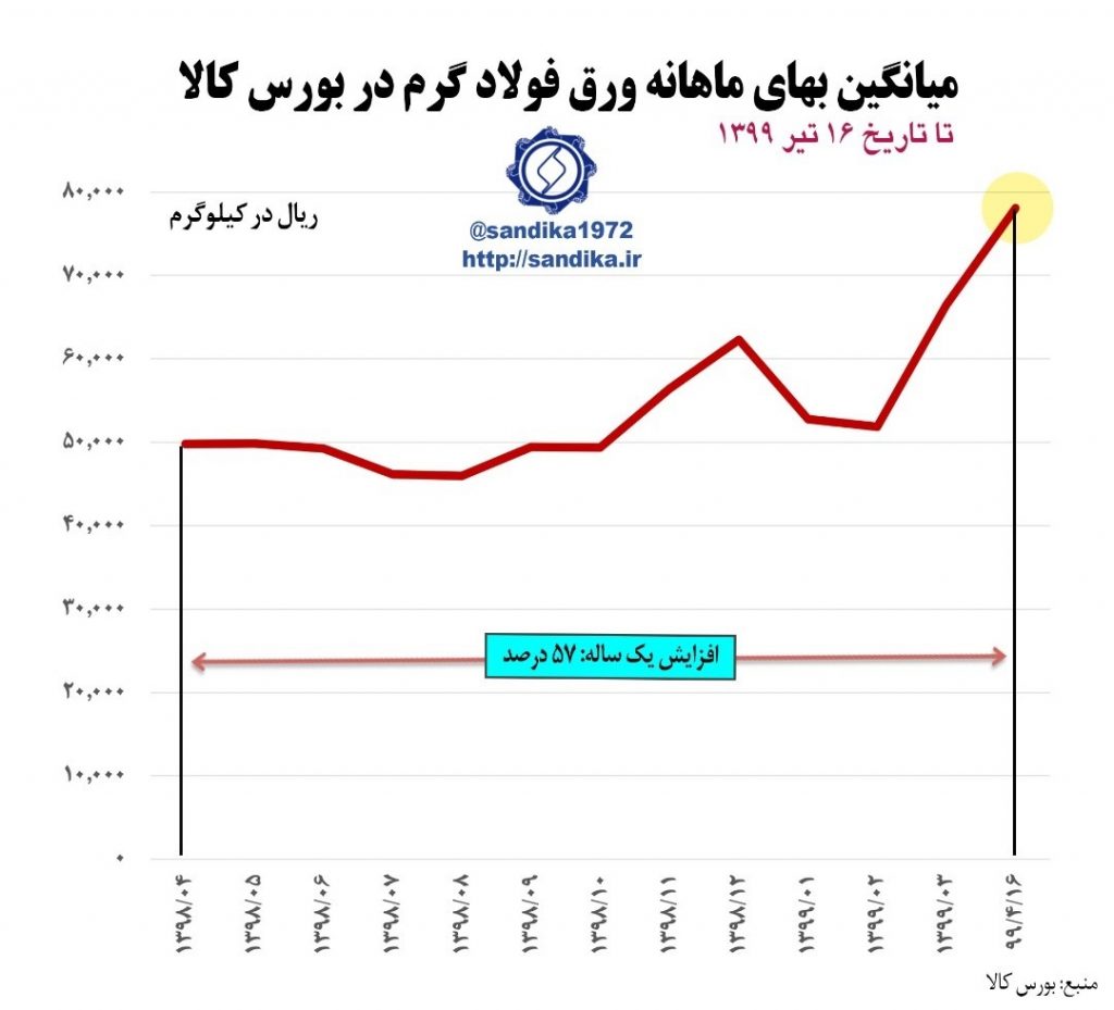 برگزیده / پیشخوان / تاپ / زنجیره فولاد / نمودار ۱۶ تیر ۱۳۹۹ شناسه خبر : 7337 میانگین بهای ماهانه ورق فولاد گرم در بورس کالا طی بازه زمانی ماهانه تا ۲ ساله