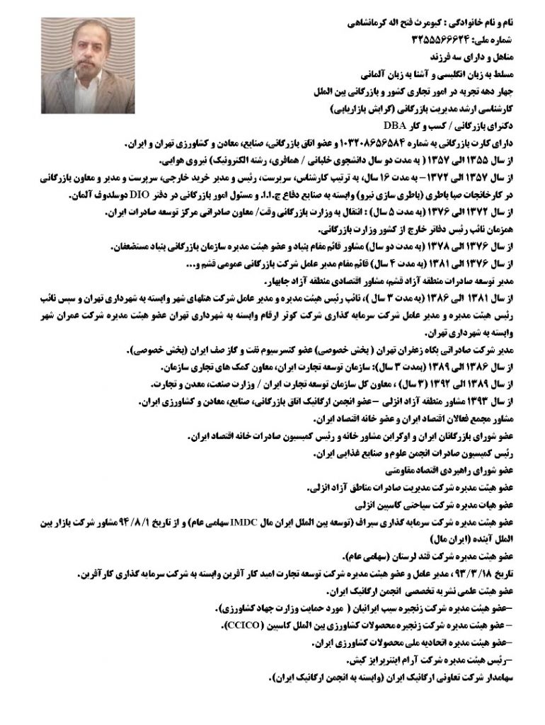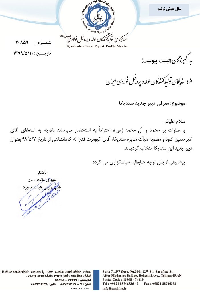 اتاق بازرگانی ۰۵ مرداد ۱۳۹۹ شناسه خبر : 7411 معرفی دکتر کیومرث کرمانشاهی به عنوان دبیر جدید سندیکا / آشنایی با سوابق و عملکرد اقای دکتر کیومرث فتح اله کرمانشاهی