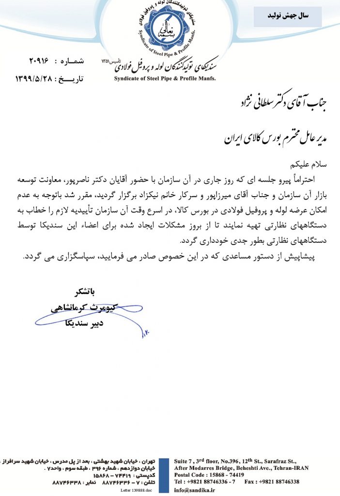 طبق اعلام آقای دکتر ناصرپور، معاونت توسعه بازار بورس این موضوع بنابه درخواست تعدادی از همکاران صنف لوله و پروفیل به هیئت مدیره بورس ، در دستور کار قرار گرفته است.