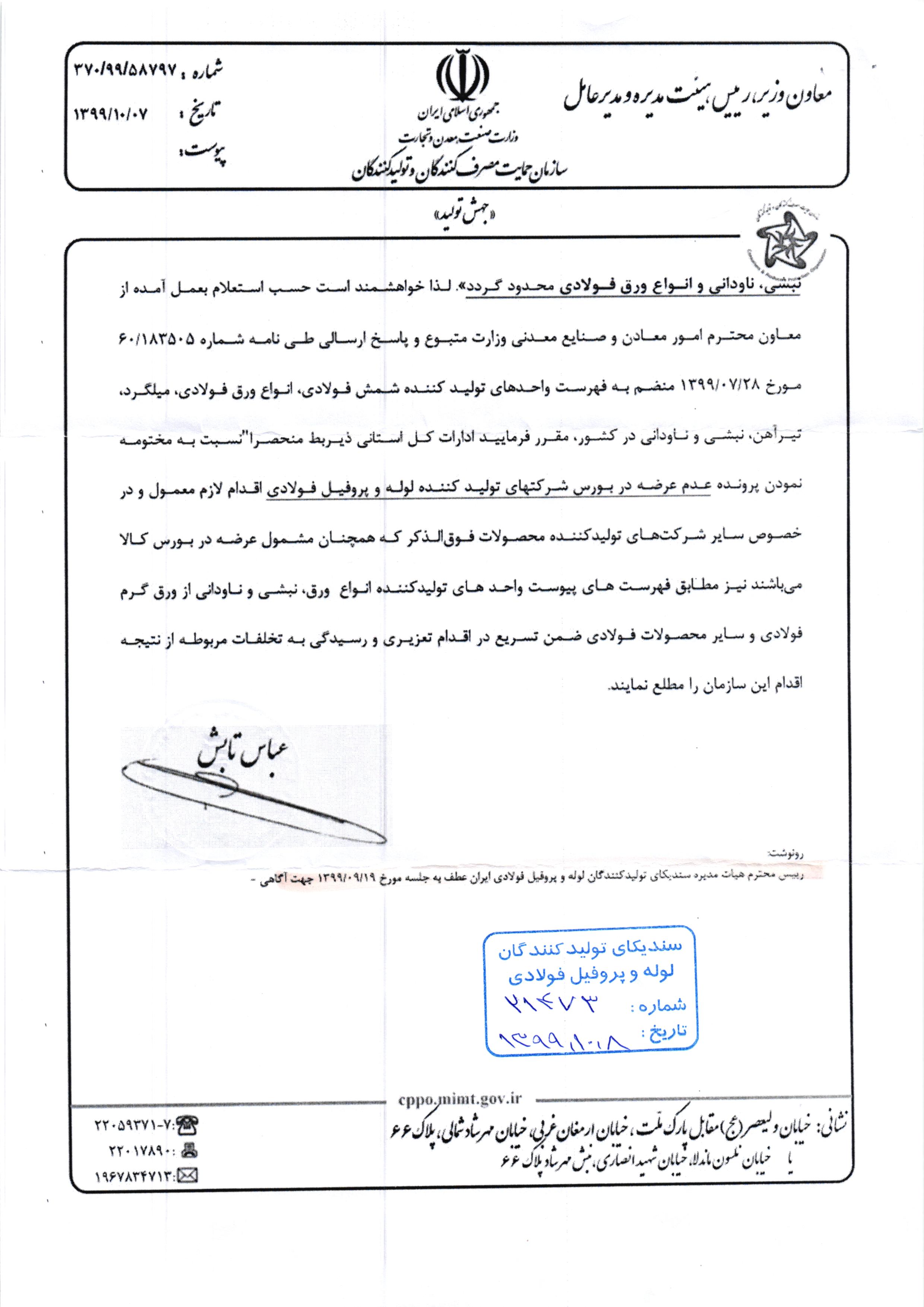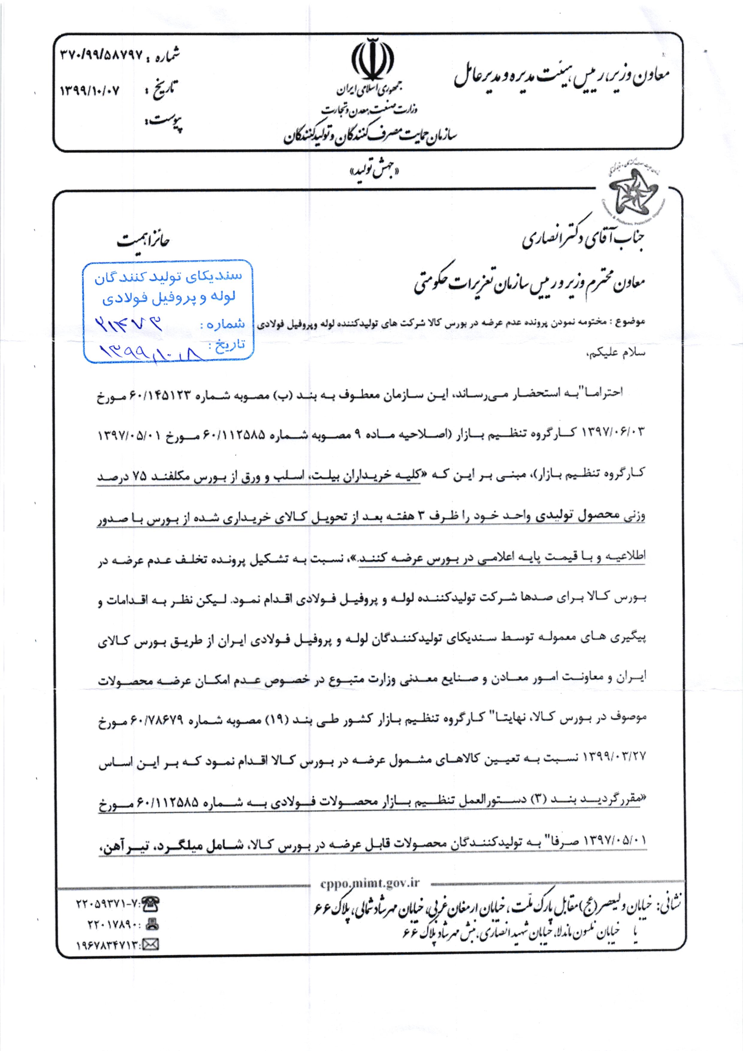 پیشخوان / تفاهم نامه ها / زنجیره فولاد / مصاحبه های دبیر سندیکا ۰۱ اردیبهشت ۱۴۰۰ شناسه خبر : 7905 مختومه نمودن پرونده عدم عرضه در بورس کالا توسط شرکت های تولید کننده لوله و پروفیل فولادی