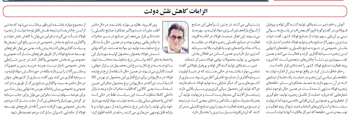 مصاحبه های دبیر سندیکا ۱۶ شهریور ۱۴۰۰ شناسه خبر : 8135 الزامات کاهش نقش دولت روزگار معدن ۱۶ شهریور ۱۴۰۰ صفحه ۷ روزگار معدن ۱۶ شهریور ۱۴۰۰ صفحه ۷