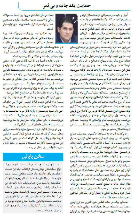 مصاحبه های دبیر سندیکا ۰۸ آبان ۱۴۰۰ شناسه خبر : 8158 حمایت یک جانبه و بی ثمر / دبیر سندیکای لوله و پروفیل