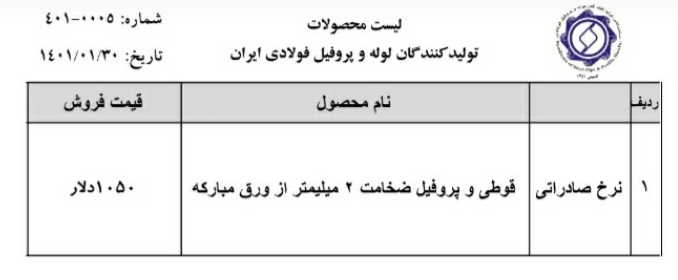 اخبار ویژه(پایگاه اطلاع رسانی سندیکای تولیدکنندگان لوله و پروفیل فولادی ایران)